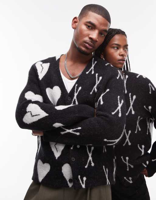 AllSaints Bonebreak oversized knitted cardigan in black