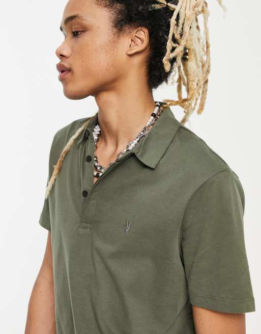 AllSaints Brace polo shirt in khaki