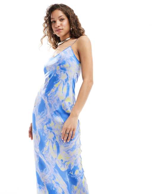 AllSaints Bryony Spiral satin midi slip dress in violet blue