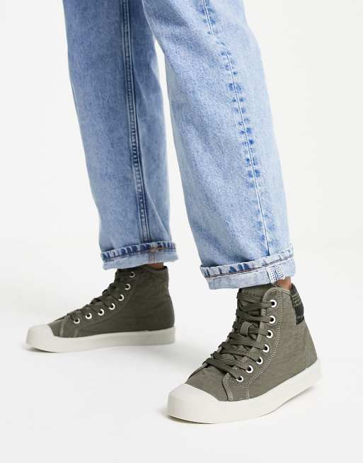 AllSaints Demmy high top lightweight trainers in khaki