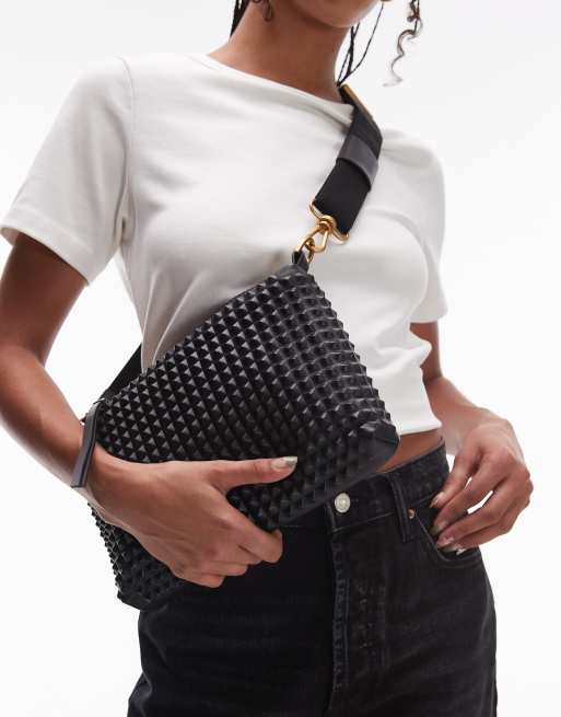 AllSaints Eve leather studded crossbody bag in black