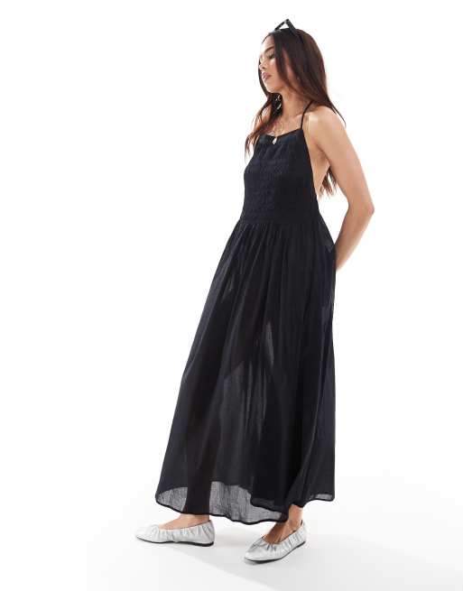 AllSaints Iris midi beach dress in black