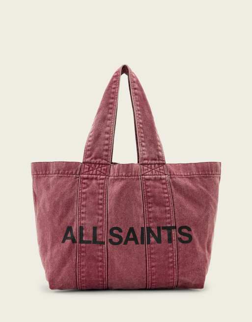 AllSaints izzy denim logo tote bag in raspberry pink