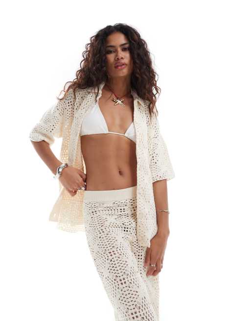 AllSaints Milly crochet shirt co-ord in ecru white