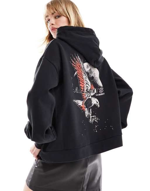 AllSaints Stardust Rihan hoodie with back print in washed black