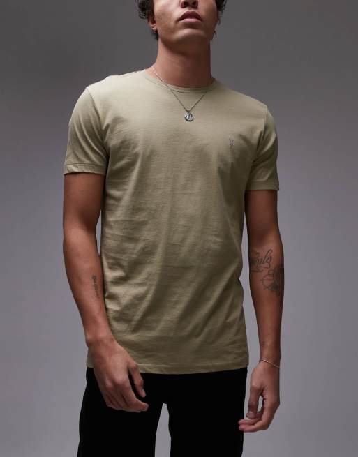 AllSaints Tonic crew t-shirt 3-pack in white brown green - BLACK