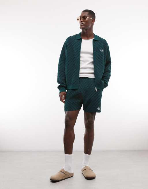 Alma De Ace rezio knit shorts co-ord in dark green