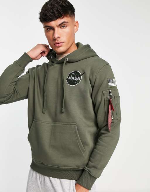 Alpha Industries NASA space shuttle back print hoodie in dark olive