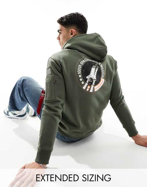 Alpha Industries space shuttle hoodie with back print in dark green