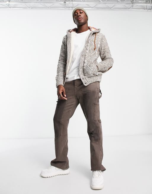 American Stitch knitted jumper in brown and cream