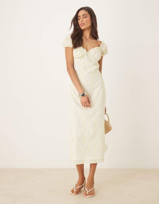Amy Jane London Daphne milkmaid midi dress in lemon ditsy