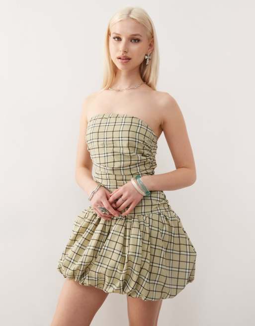 Amy Lynn bandeau puffball mini dress in light green check