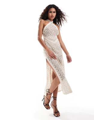 Amy Lynn crochet halter midaxi dress with cut out back detail in natural
