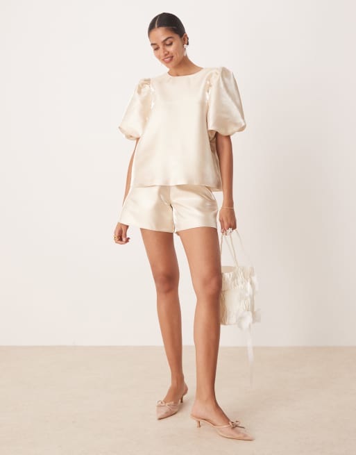 Amy Lynn high shine a-line tailored shorts co-ord in stone