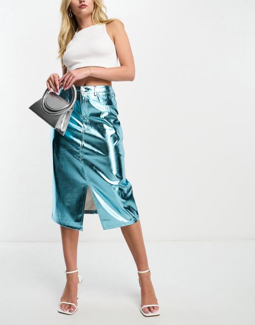 Amy Lynn Lupe midi skirt in metallic ice blue
