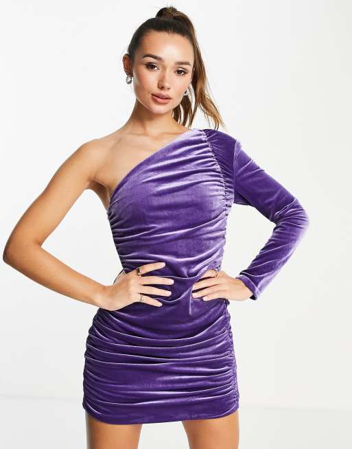 Amy Lynn ruched mini dress with one shoulder in purple velvet