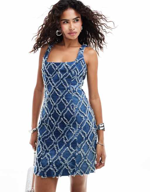 Amy Lynn textured diamond denim mini dress in darkwash blue