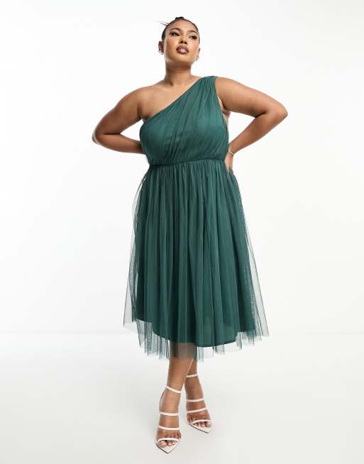 Anaya Plus Bridesmaid tulle one shoulder midi dress in emerald green