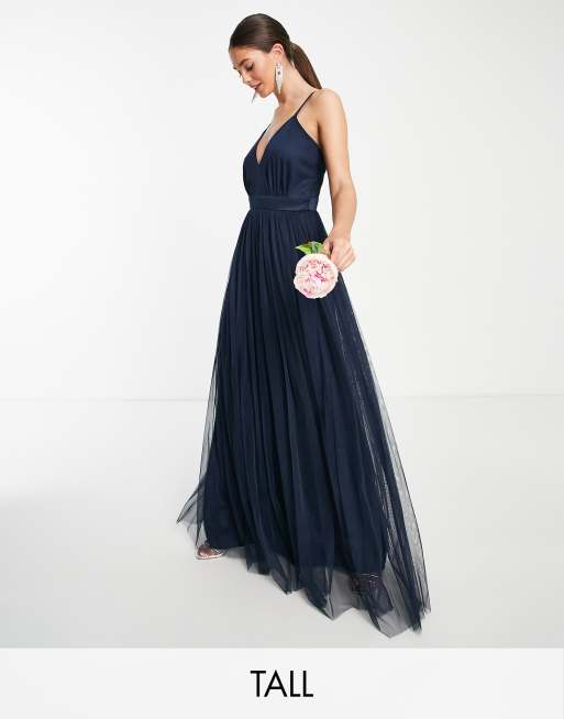 Anaya With Love Bridesmaid Tall tulle plunge front maxi dress in navy