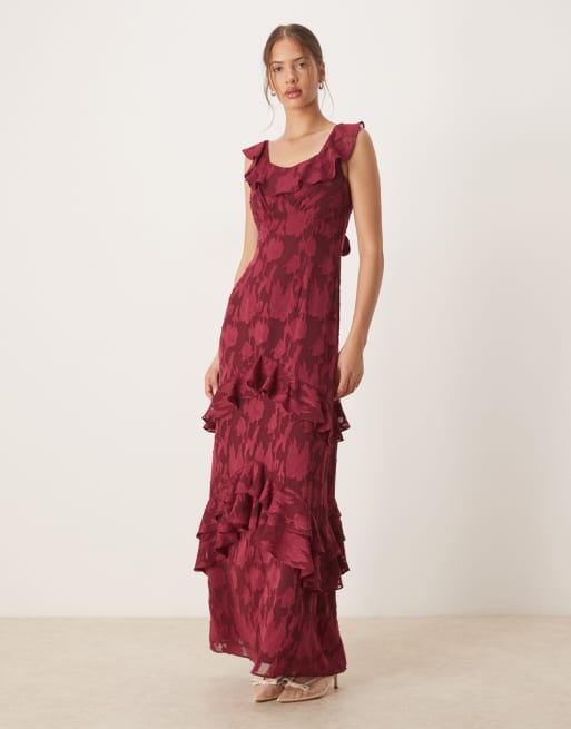 Anaya Floral burnout ruffle maxi dress in dark raspberry
