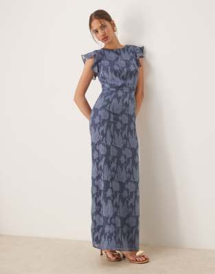 Anaya Floral flutter sleeve maxi dress in storm blue