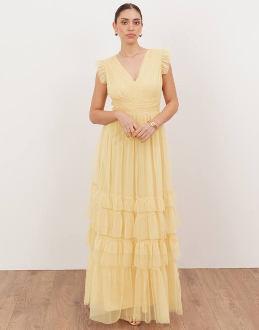 Anaya Flutter sleeve ruffle maxi dress in butter yellow