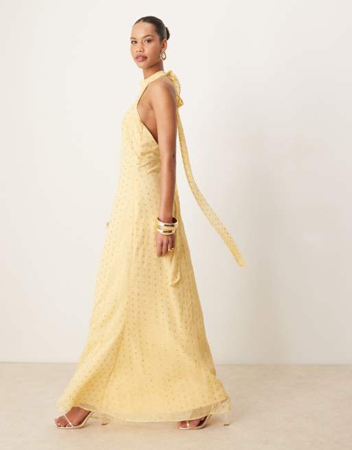 Anaya Gold foil halter neck maxi dress in butter yellow