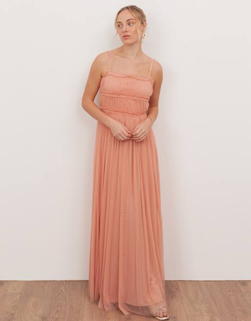 Anaya Square neck strappy tulle maxi dress in peach