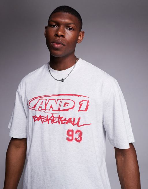 AND1 oversized t-shirt with sports motif in light grey