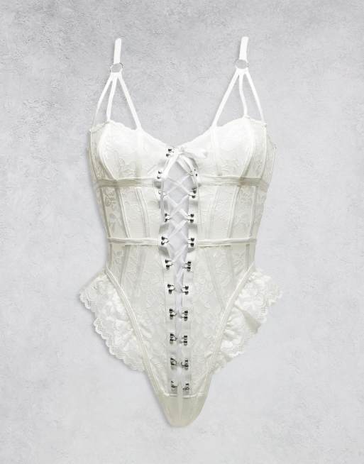 Ann Summers Boudoir Tease Crotchless Bodysuit Teddy in ivory - IVORY