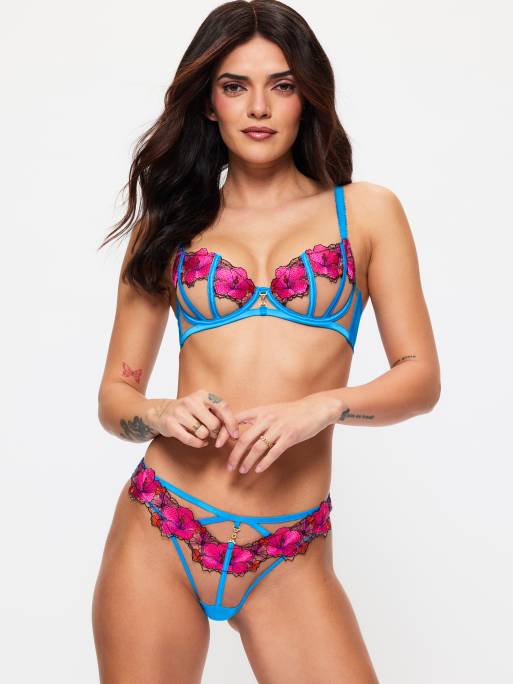 Ann Summers Caged hibiscus non padded balcony bra in turquoise