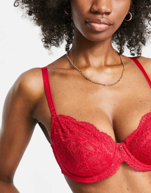 Ann Summers Fuller Bust Sexy Lace non padded plunge bra in red