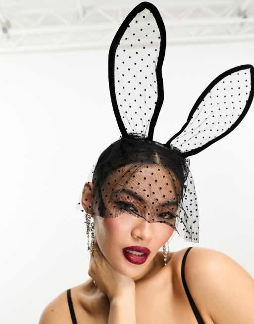 Ann Summers Halloween dotty mesh and lace bunny headband in black - BLACK