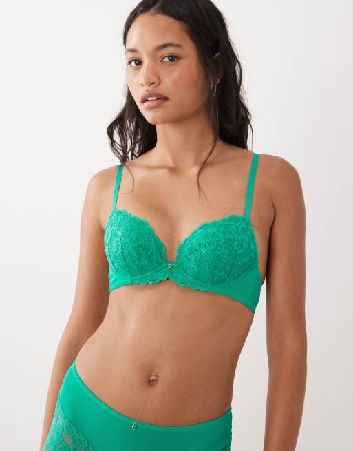 Ann Summers sexy lace padded plunge bra in vivid green