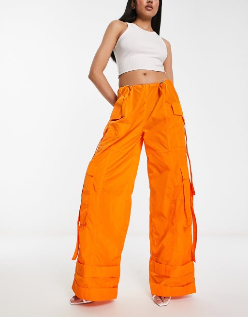 Annorlunda nylon oversized parachute trousers in bright orange