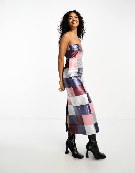 Annorlunda patchwork metallic bandeau midi dress in multi
