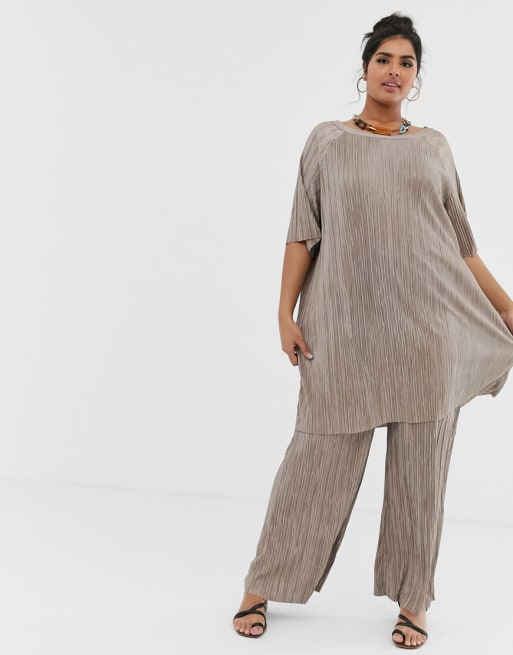 Another Reason Plus relaxed t-shirt & trousers in plisse co-ord