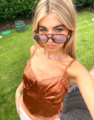 Another Reason cami crop top in satin with lace trim