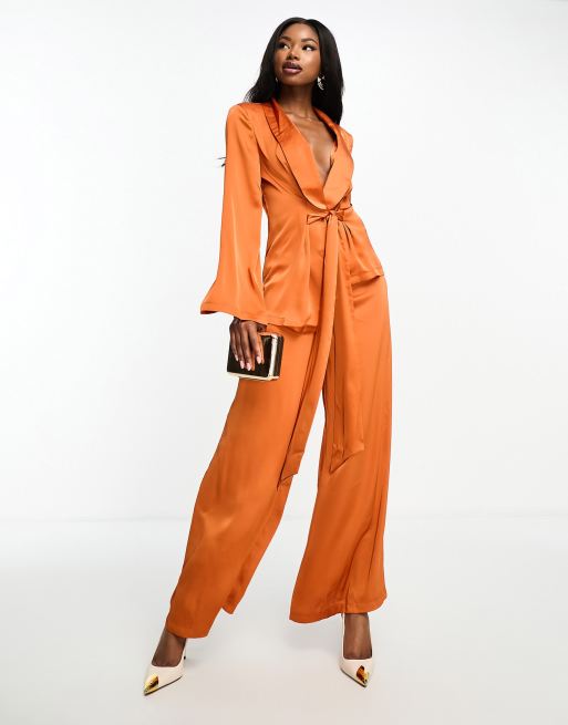 Aria Cove satin palazzo trousers co-ord in rust