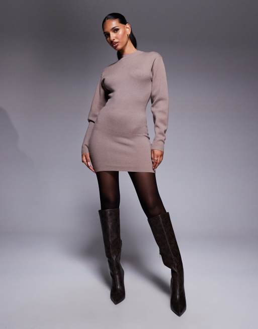 Aria Cove structured knit cocoon sleeve jumper dress in mocha