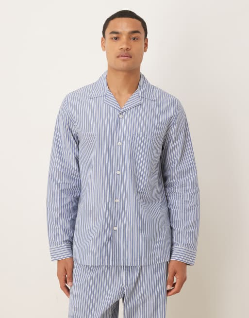 ARKET co-ord premium cotton long sleeve pyjama shirt in blue and white stripe