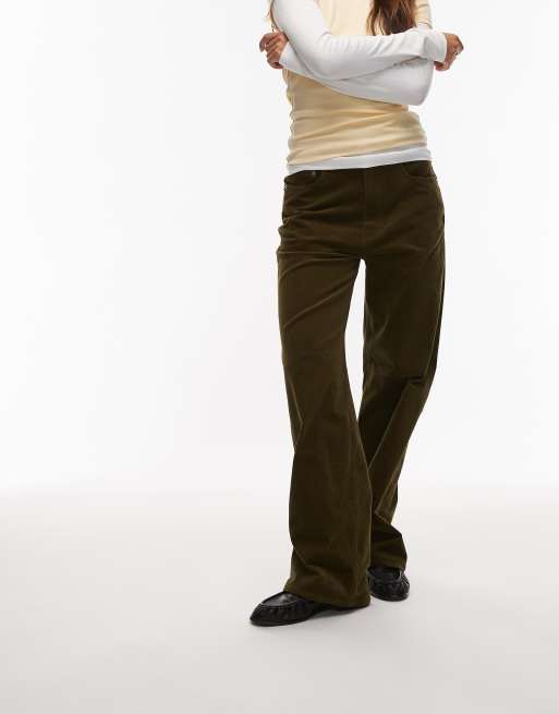 ARKET Coral low rise baggy wide leg stretch cord trousers in khaki green