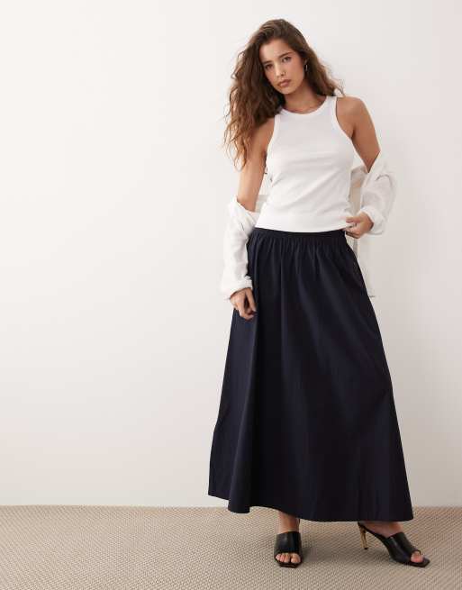 ARKET pure cotton pleated maxi skirt with slit in dark blue