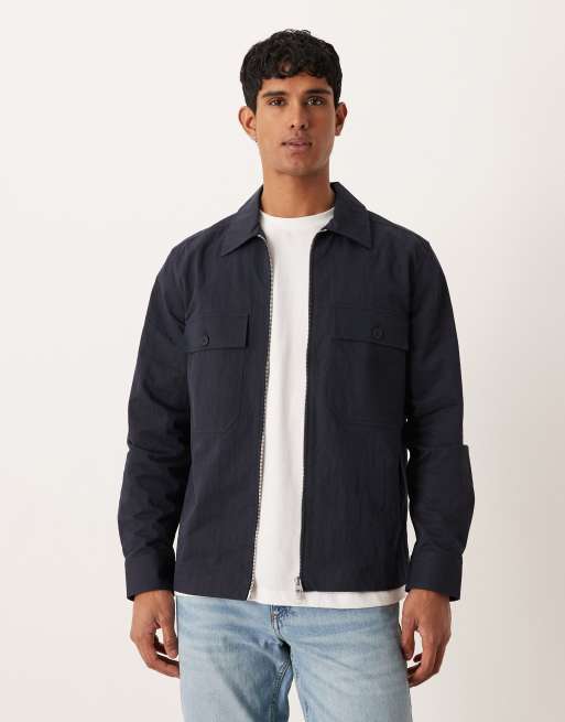 ARKET pure cotton zip up overshirt in navy
