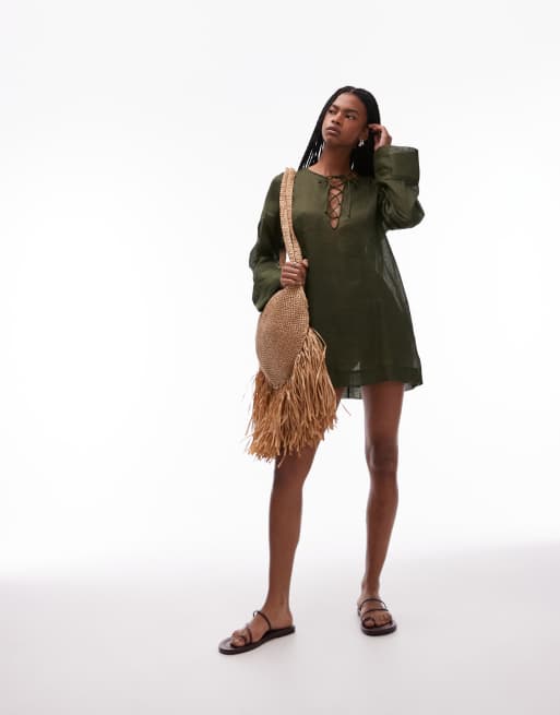 ARKET pure ramie sheer mini beach cover-up in khaki green