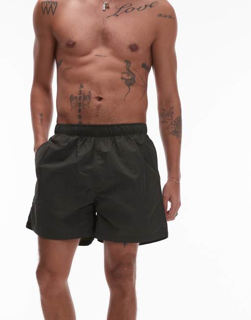 ARKET ribstop swim short in dark green check