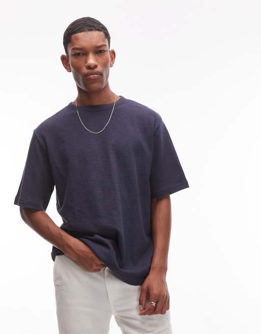 ARKET soft touch heavyweight boucle jersey oversized t-shirt in navy blue