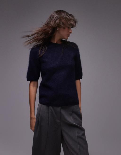 ARKET wool supersoft plush knit sweater with crew neck in blue