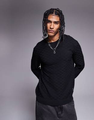 Armani Exchange crew neck textured logo jumper in black