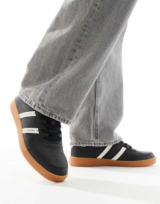Armani Exchange double logo stripe gum sole trainers in black/off white